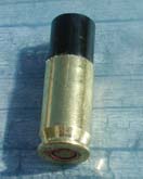 A client needed a transmitter that could be fired by a .45 caliber gun. It was required to start transmitting upon firing and survive impact. The transmitter consisted of a stainless steel housing enclosing two hearing aid batteries and two pcb's. One pcb held the X-Band transmitter and the other held a microprocessor and trigger circuitry. The entire stainless steel housing was inserted into a plastic shell casing and filled with glue that allowed the transmitter to stick to whatever it hit and continue transmitting.